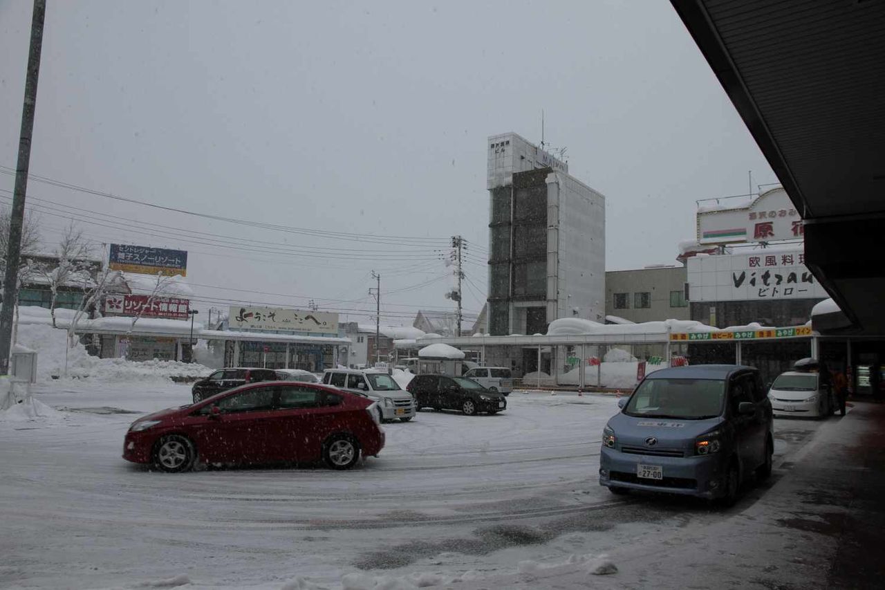 合わせてスキー場や温泉街に近い越後湯沢駅西口前を撮影し