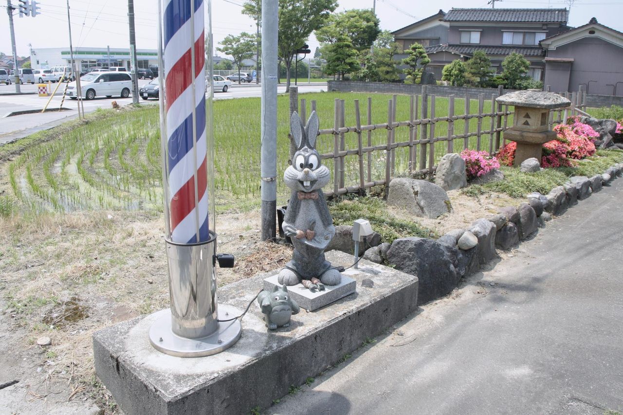 バックスバニーとトトロ小型版の石像を発見し