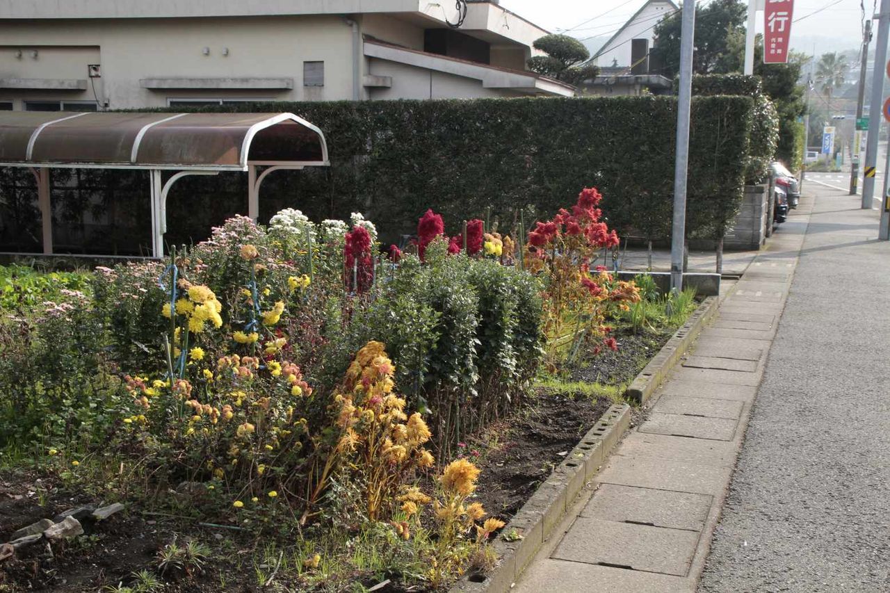 道路沿いには色とりどりの花が咲き乱れていました。