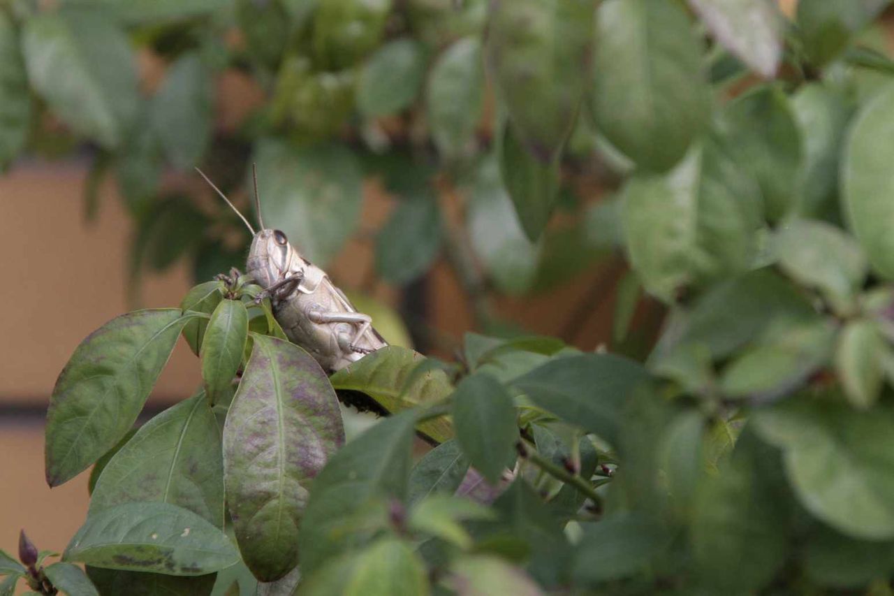 冬に似つかわしくない、木に止まる生きたバッタを見た後は