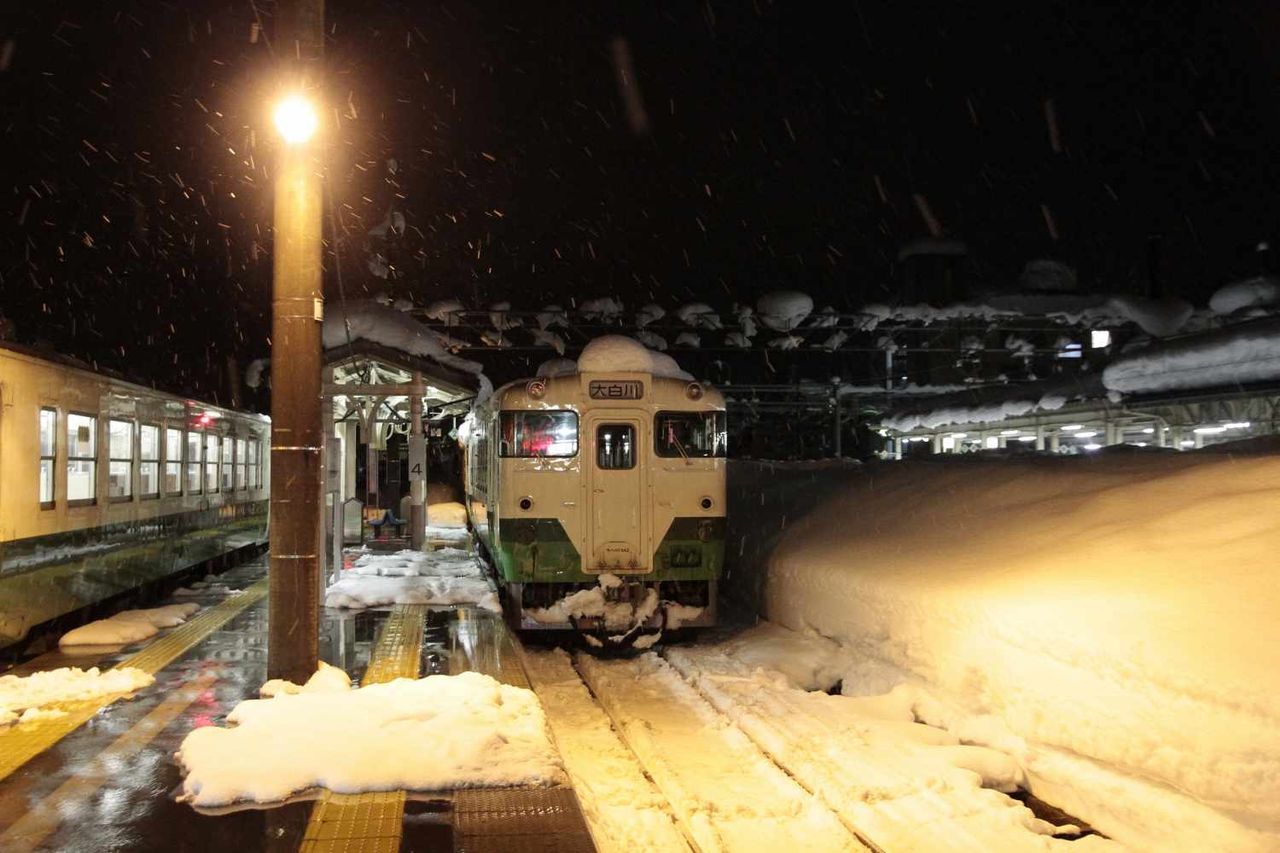 朝暗いうちから小出駅へと向かうと、早過ぎる時間帯の為