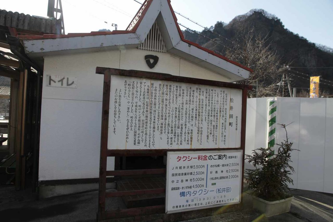 おぎのや資料館を見学後、横川駅近くのトイレ前に看板が建てられていたので