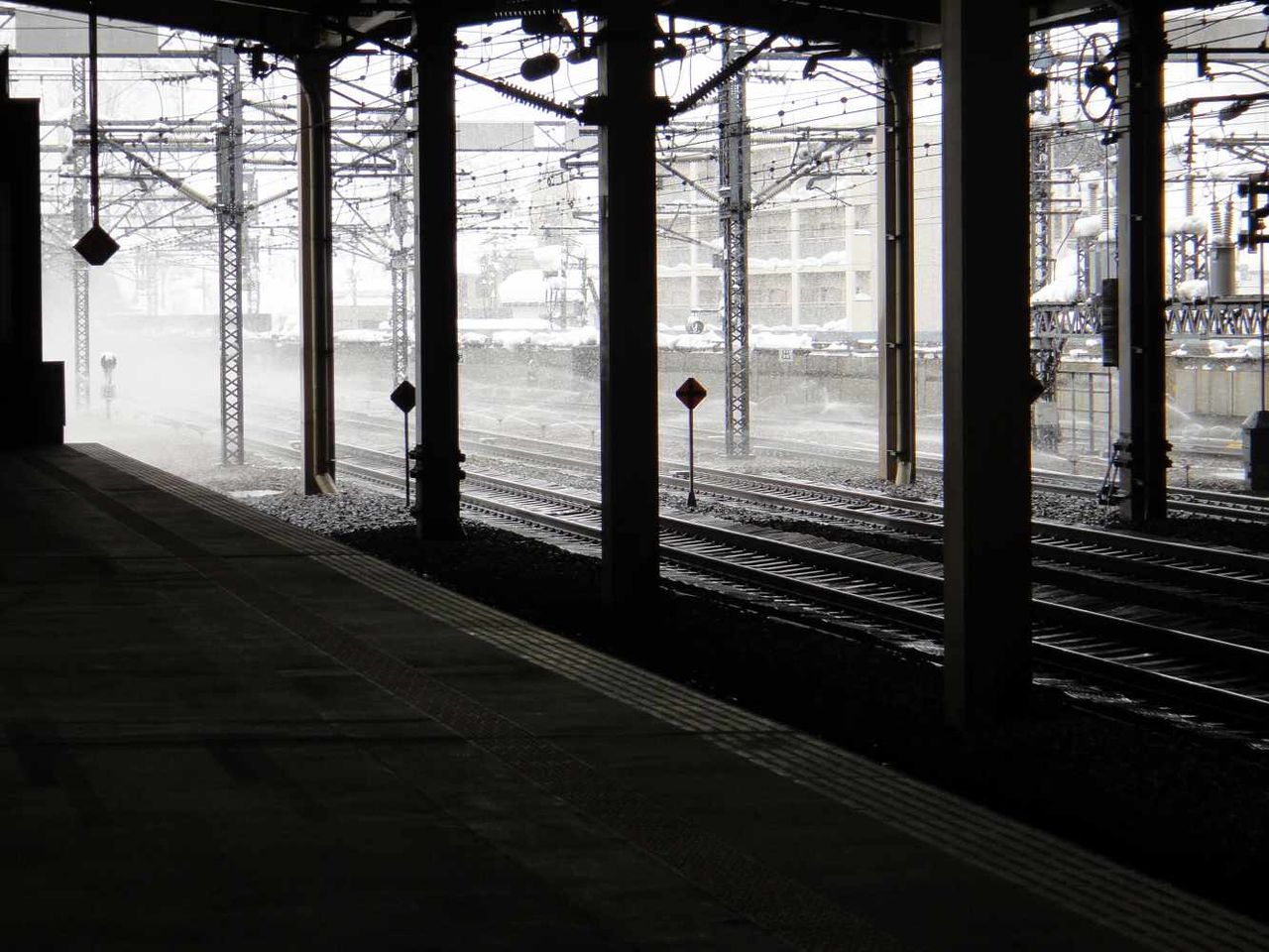 雪深い場所にある駅なので、在来線と同様に新幹線の線路横にも