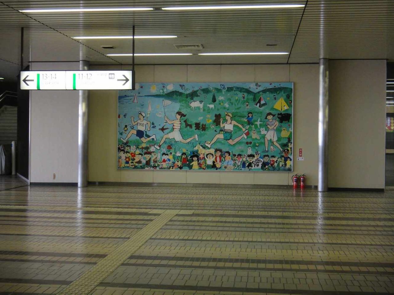 ホーム内にものすごく長いスキー板が構内中央付近に展示されていました。