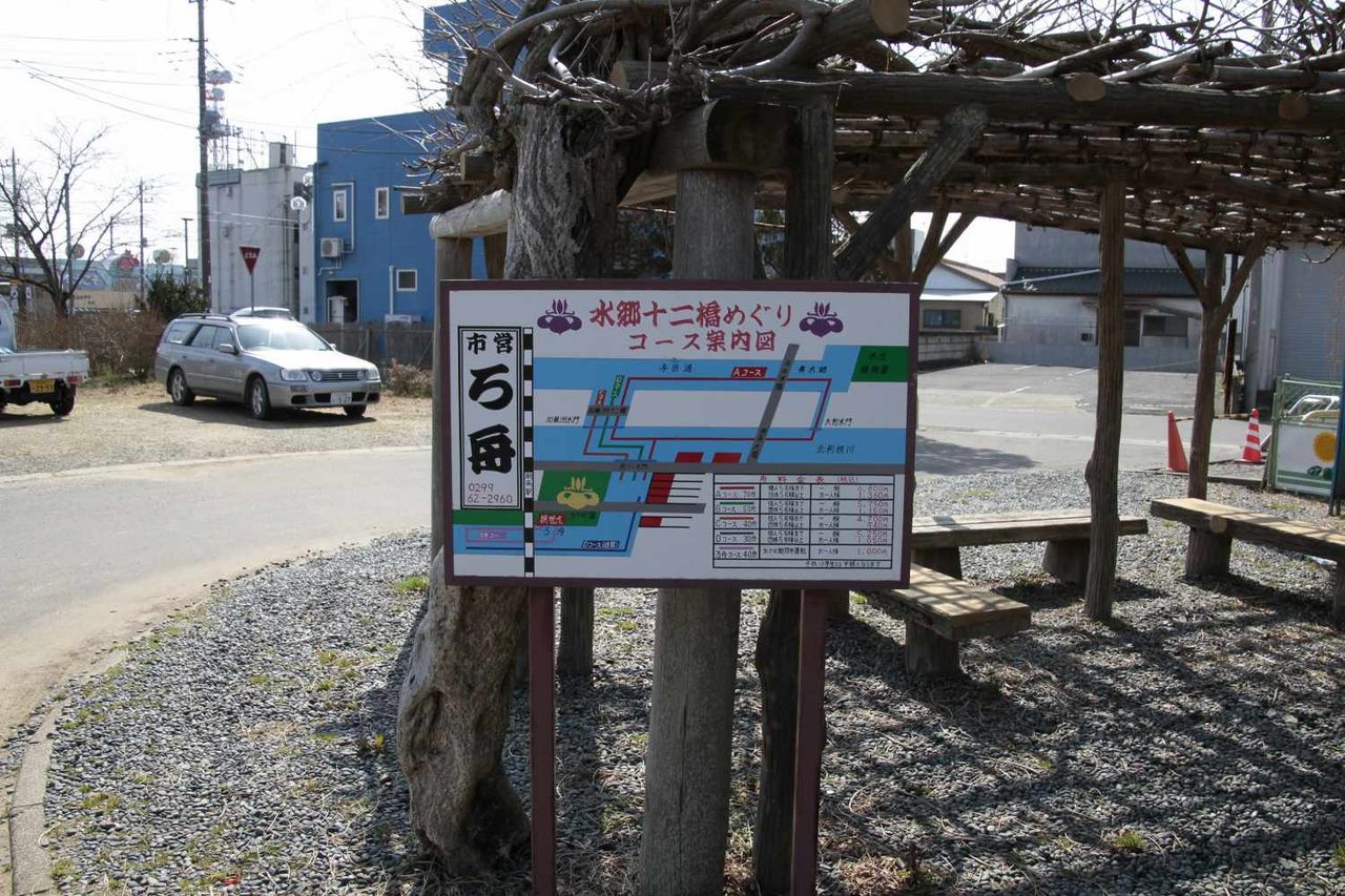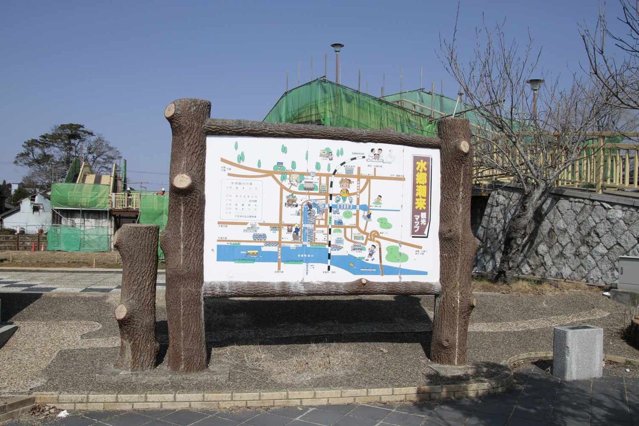 水郷潮来地区の観光地が記された看板に