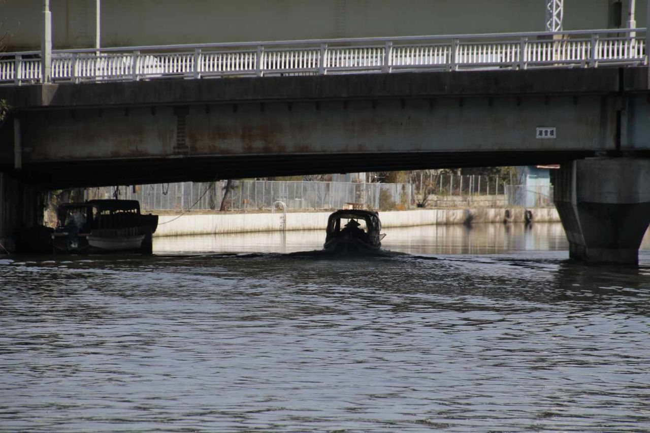 船着き場の撮影を行っていると、水路を観光ボートが勢い良く横切って行きました。