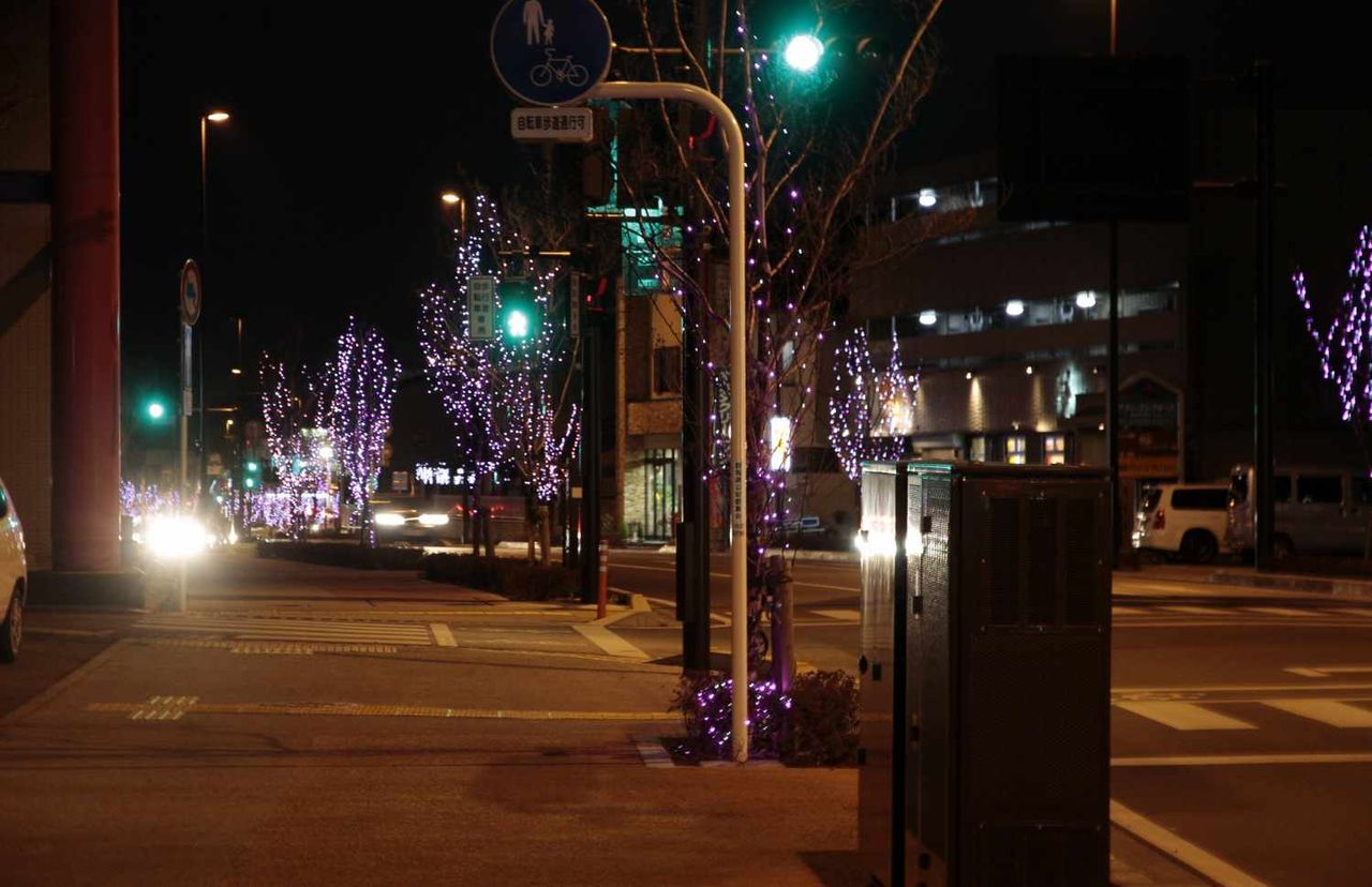 館林駅から真っ直ぐ続く通りには各種イルミネーションが輝き、更に電柱が地上になく