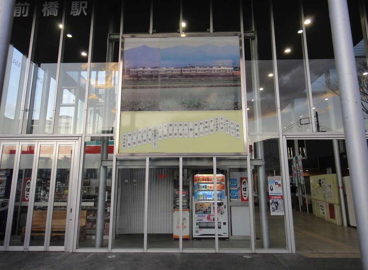 上毛電気鉄道の停車駅名が書かれた看板を見学し