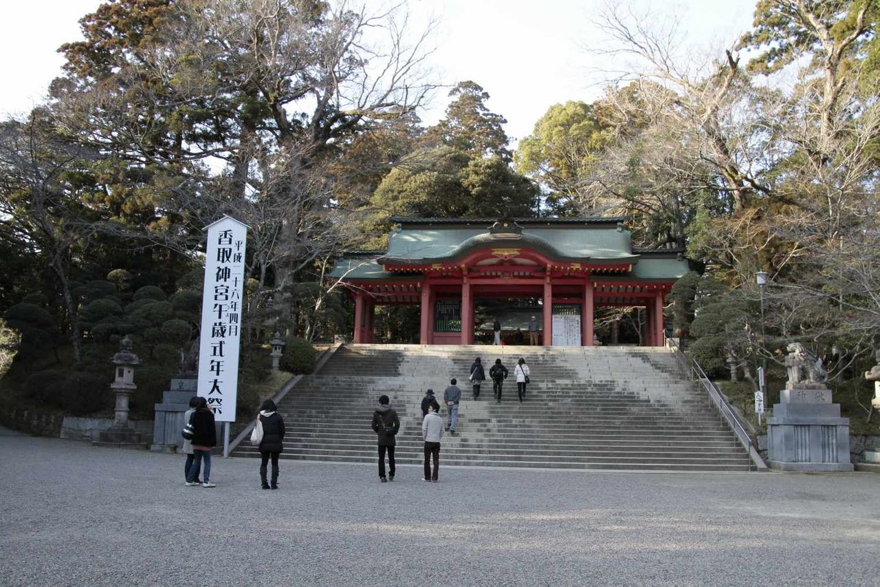 香取神宮は日本全国に約400社ある香取神社の総本社で祭神は経津主大神 (伊波比主命)。