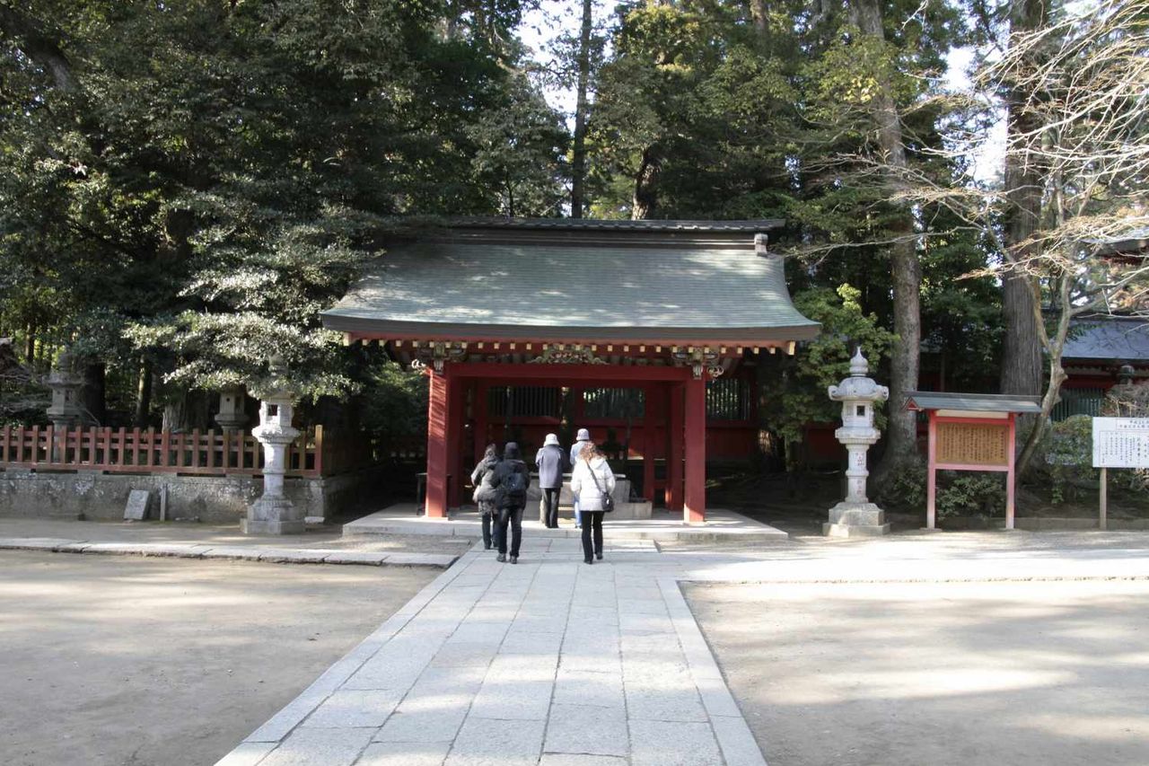 総門前の庭園を見学した後は、総門手前の鳥居をまたいで先へと進みます。