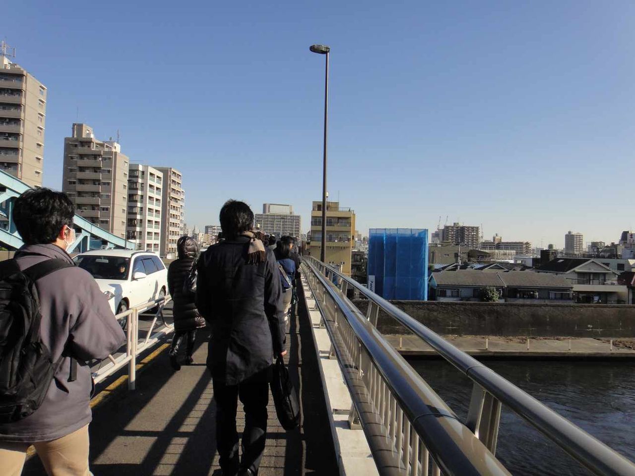 荒川沿いからは続々と千住新橋に向けて人が集まってきています。