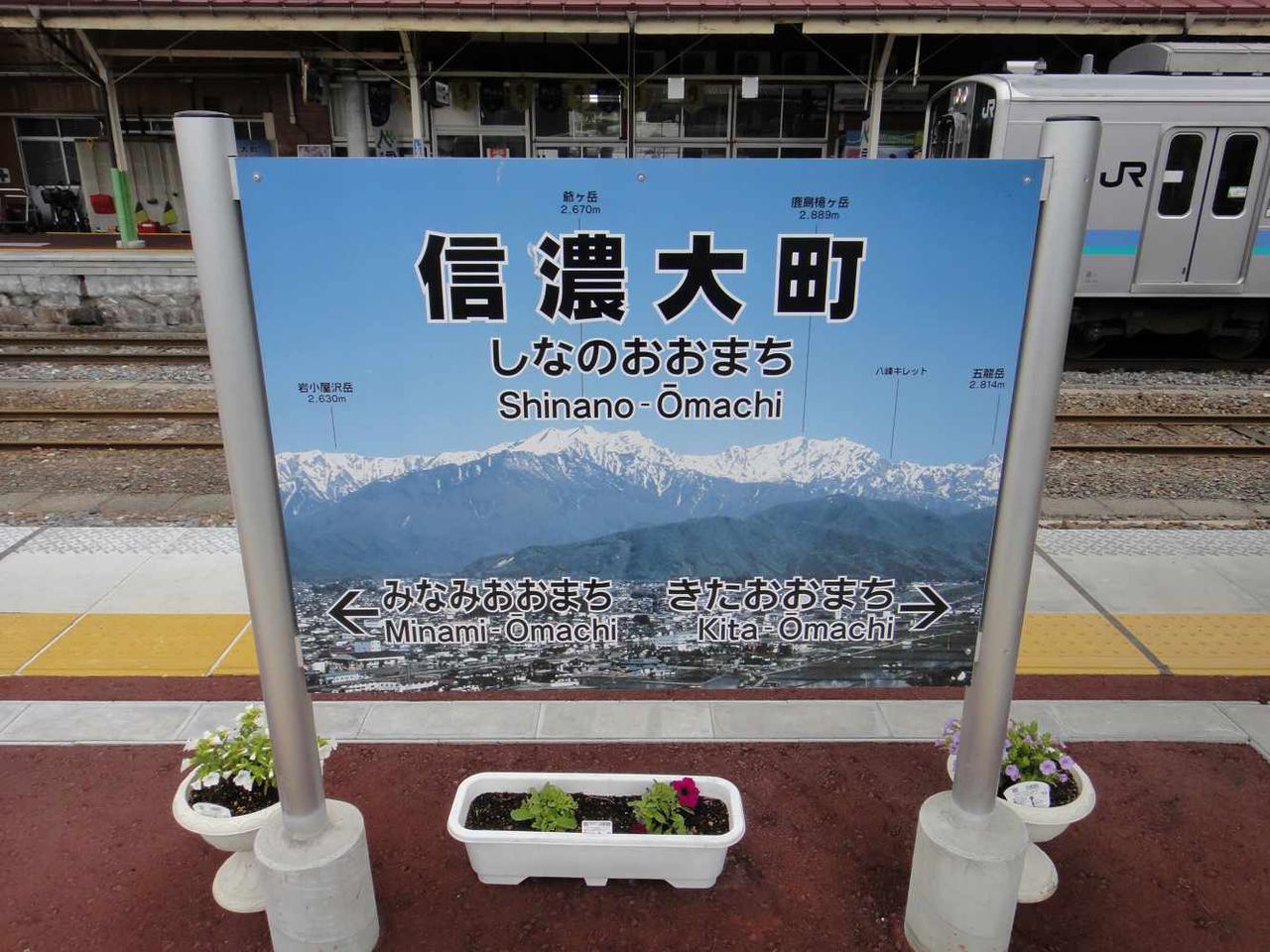 その後信濃大町駅へと到着すると、今までの森や山に囲まれた田舎な雰囲気の車窓から