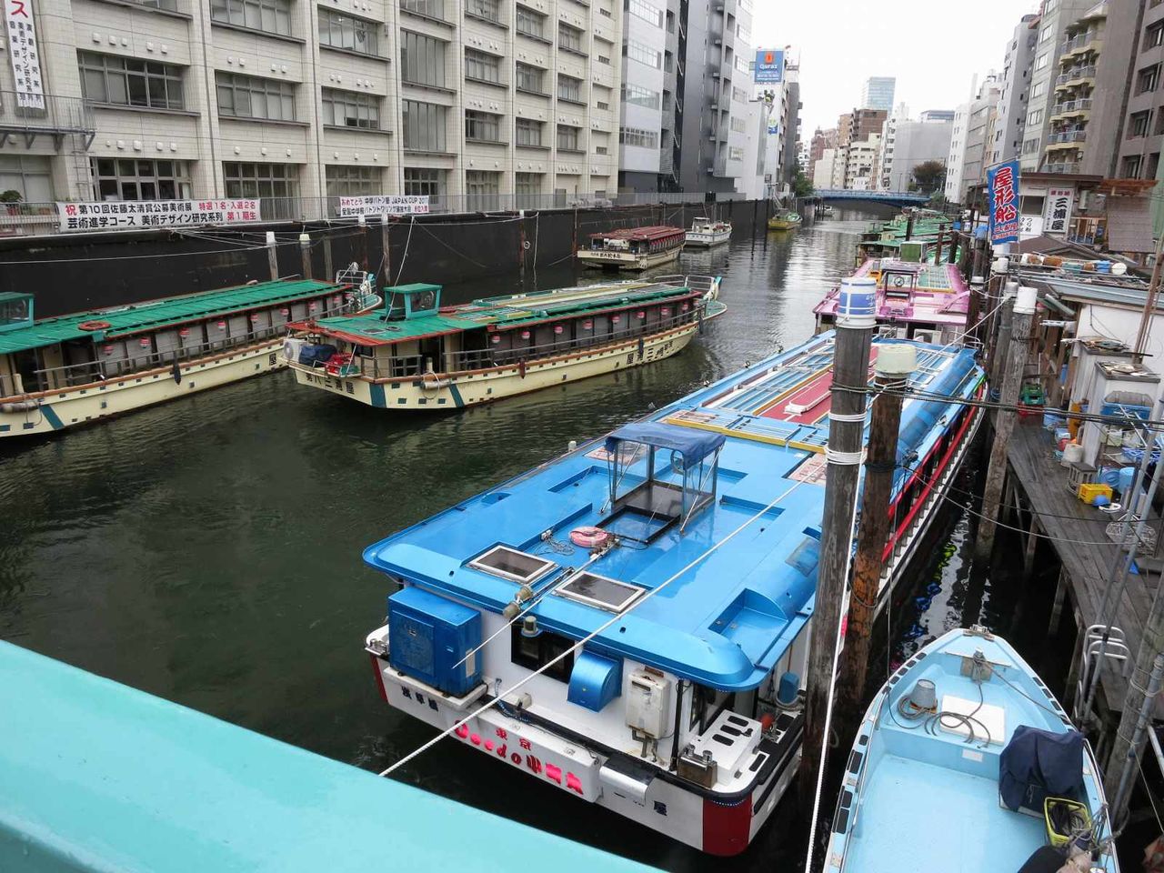夜の帳が下りる頃の活動時間に向けて、たくさんの屋形船が待機していました。