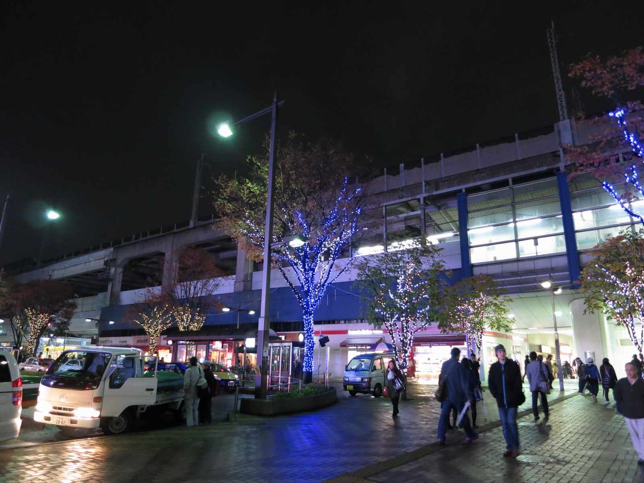 東口と違ってイルミネーションの数も少なく地味である物の、西口のほうが人通りが少なく