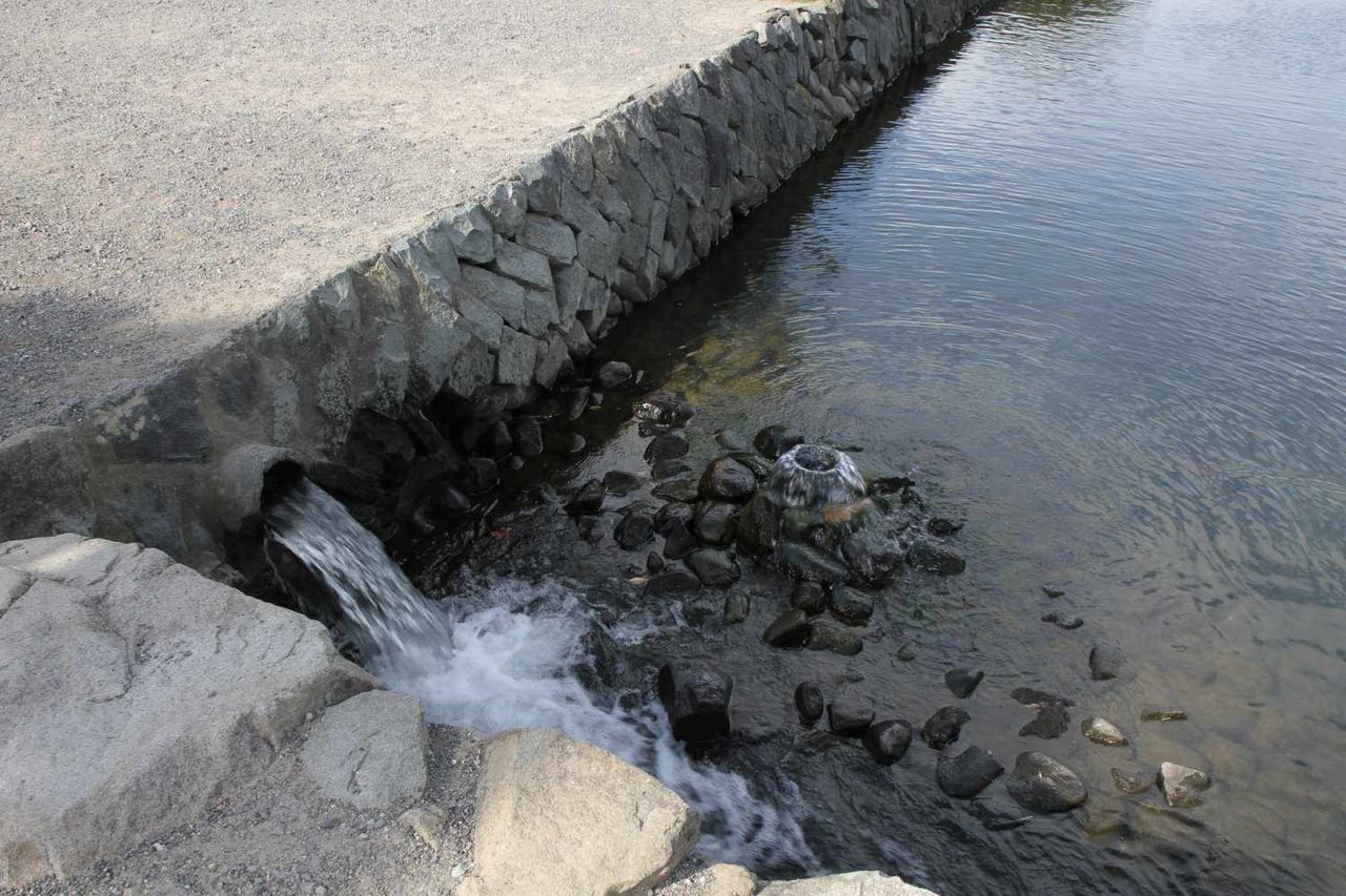 松本城の堀の中に、川などから水を導入する水路の他に、明らかに水が湧き出している部分があり