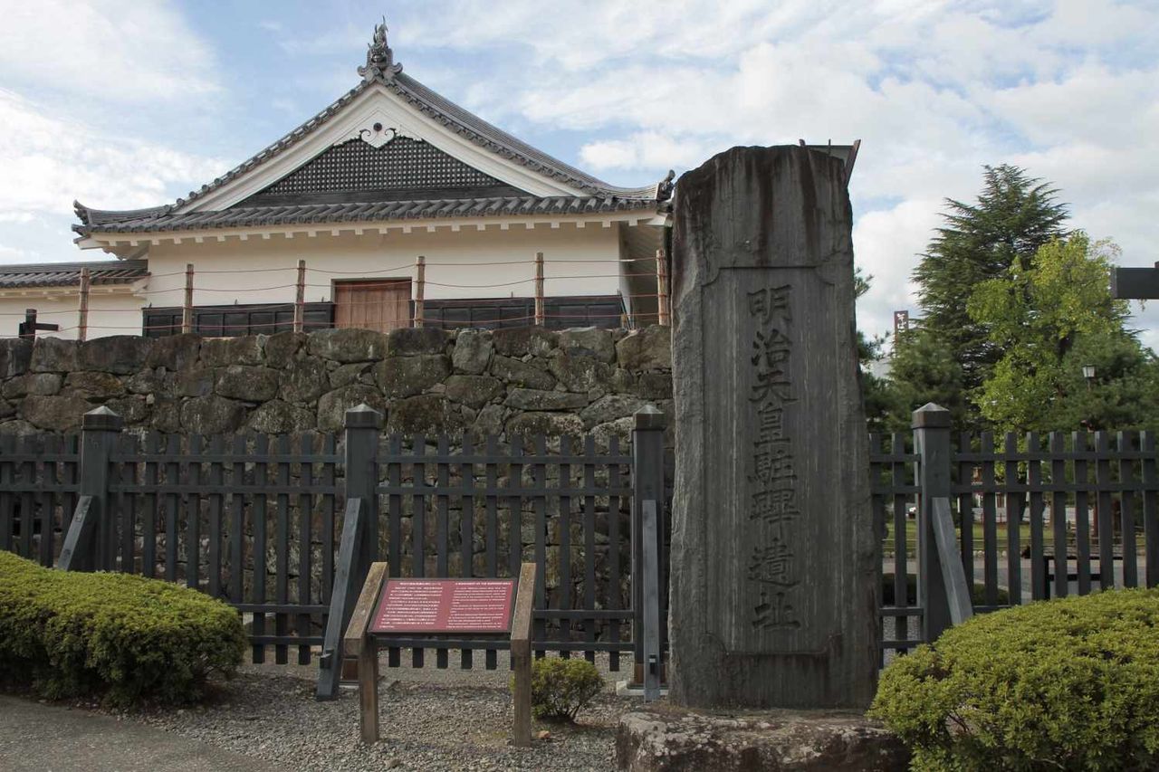 松本市役所側の裏門側には、かつて明治天皇がこの地に駐驛した事を示す石碑があります。