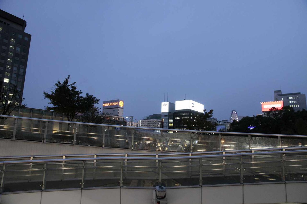 オアシス21の近くには名古屋市伊一の繁華街である栄地区があり、栄地区の方を見てみると