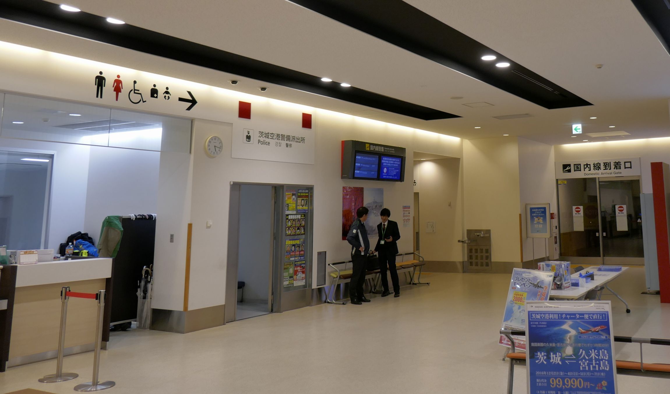 更に奥に進むと、国内線到着口、茨城空港警備派出所、宅急便の受付窓口があります。