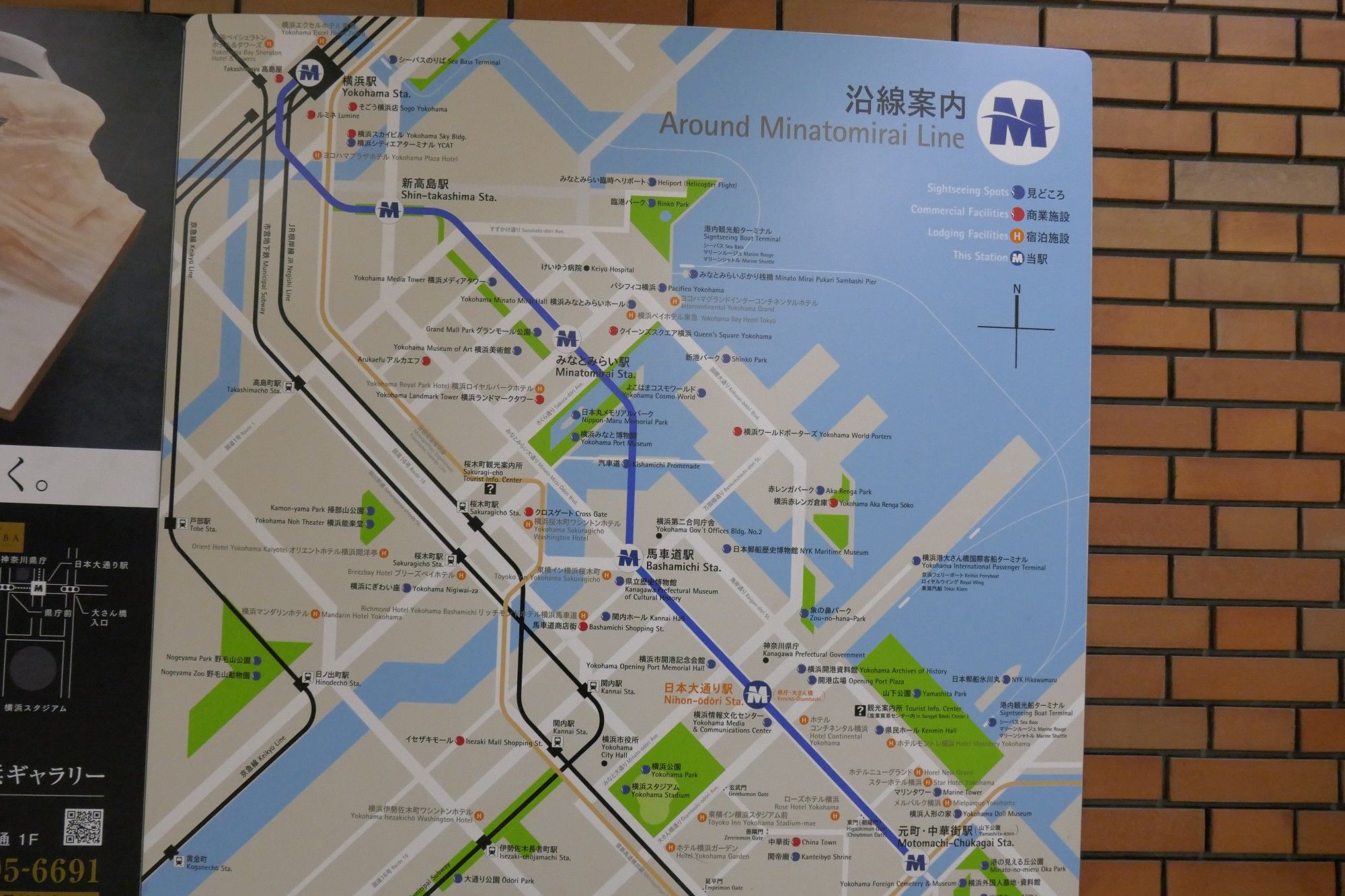 改札の外に出ると、沿線案内図があったので、横浜赤レンガ倉庫の位置を確認。