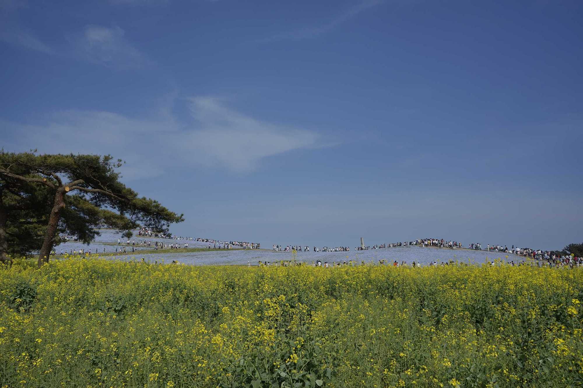 みはらしの里ではネモフィラと合わせて菜の花が咲き乱れており